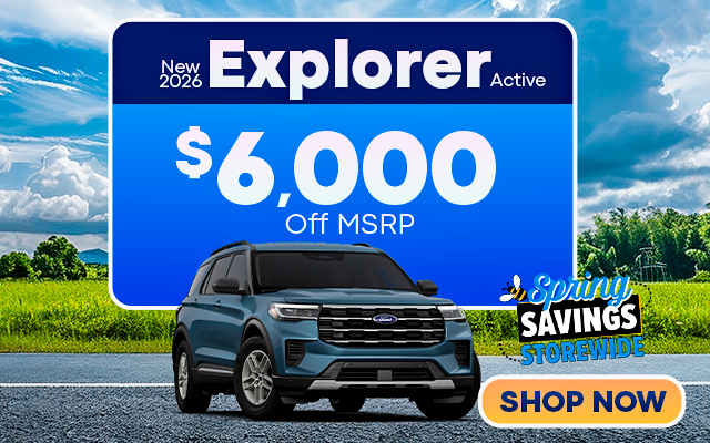Excludes registration, tax, title, license, insurance & $387 dealer fee. New 2026 Ford Explorer Active, Ex STK FT816, MSRP $42,400, discount includes $3500 Retail Customer Cash from Ford and $2500 dealer discount, sale price: $36,400. WIth approved credit. Ends 4/30/26.