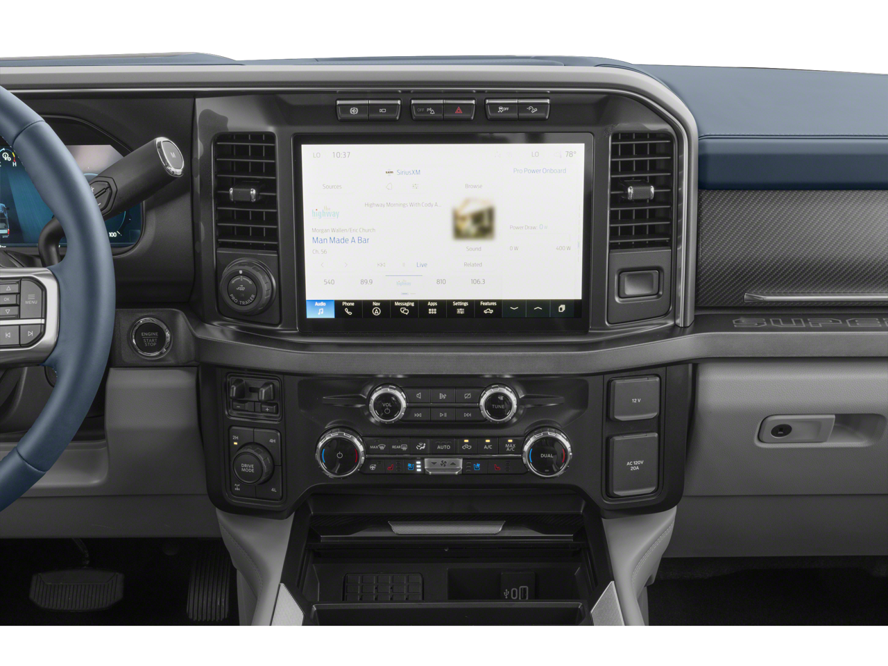 - SYNC 4 w/Enhanced Voice Recognition -inc: 12" LCD capacitive touchscreen w/swipe capability, information on demand panel, wireless phone connection, cloud connected, AppLink w/app catalog, 911 Assist, Apple CarPlay and Android Auto compatibility, digital owner's manual, conversational voice command recognition and connected navigation w/complimentary 1-year trial for eligible vehicles that begins on the new vehicle warranty start date, Customers must unlock the navigation service trial by activating the eligible vehicle w/a FordPass member account, If not subscribed by the end of the complimentary period, the connected navigation service will terminate, and the system will revert to embedded offline navigation, Navigation services require SYNC4 and Ford Pass Connect (optional on select vehicles), complimentary connect service and the FordPass app (see FordPass terms for details), Connected service and features depend on compatible AT&T network availability, Evolving technology/cellular networks/vehicle capability may limit functionality and prevent operation of connected features, FordPass app, compatible w/select smartphone platforms, is available via a download, Message and data rates may apply