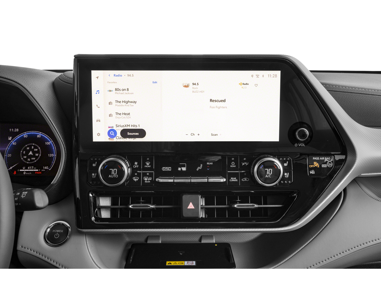 - Radio w/Seek-Scan, Clock, Speed Compensated Volume Control, Steering Wheel Controls, Voice Activation and External Memory Control